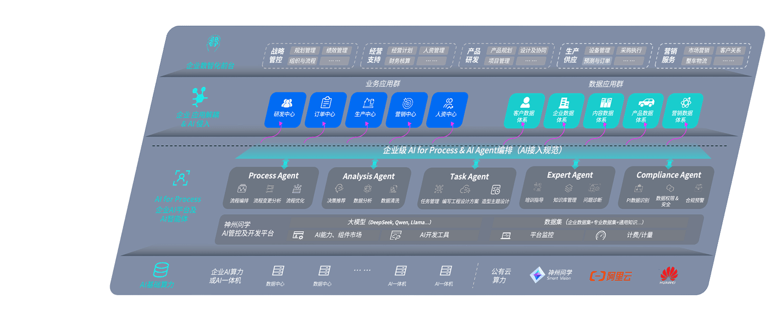 彩神vll问学智车解决方案是一套基于AI技术的汽车行业智能化系统,,,,覆盖从底层算力到顶层AI应用的全栈方案。。方案由算力层、、、模型层和应用层组成:算力层,,方案支持多种一体机配置,,,具备云端灵活部署、、、、多云适配以及动态优化计算资源的能力;模型层,,,彩神vll问学平台版提供了企业级AI应用一站式构建与管理平台,,,,支持基于后训练强化技术的汽车企业专属模型的训练、、、、评测和运营;应用层,,彩神vll问学DeepSeek版提供包括超级员工、、智能招采、、、智能营销、、智能客服、、AI for BI等一系列解决方案,,可助力汽车行业实现数字化转型,,,让管理更智能、、、响应更敏捷。。。。